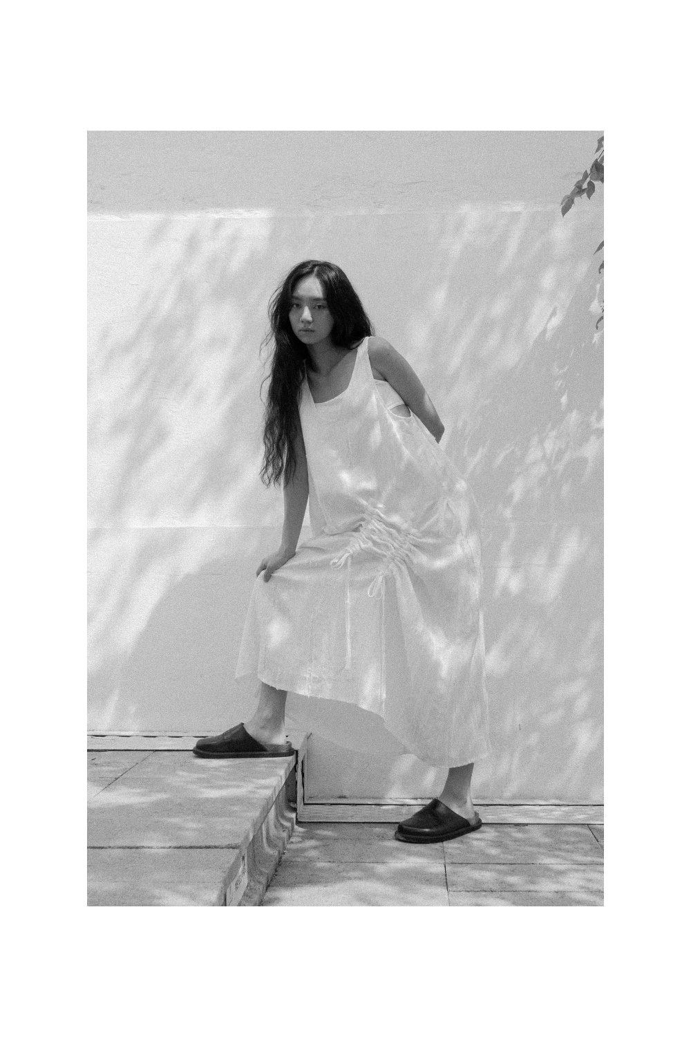 플랫한 기본실루엣과 기존 테슬드레스의 시그니처였던 셔링 디테일의 곡선 쉐입