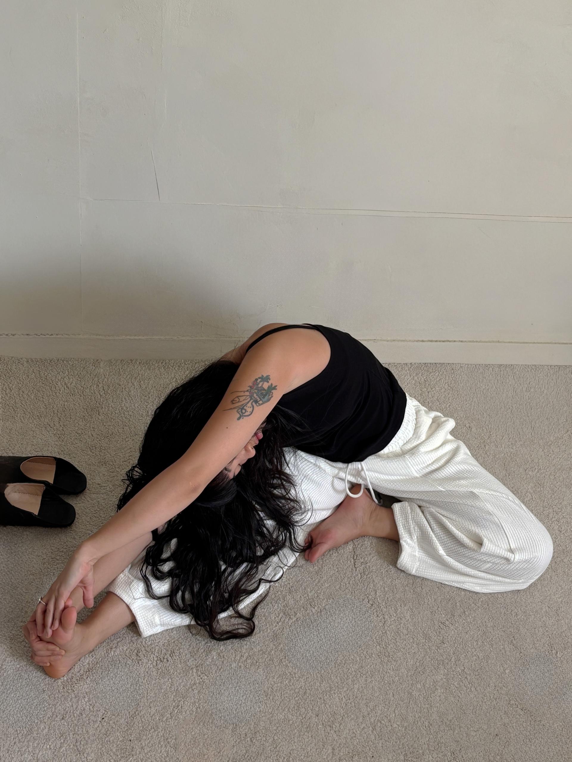밑단부분 고무줄밴딩이 아닌 절개로 잡힌 라인이며 원단의 특성으로 움직일 때 마다 부드러운 무게감이 주는 라인이 매력적입니다.