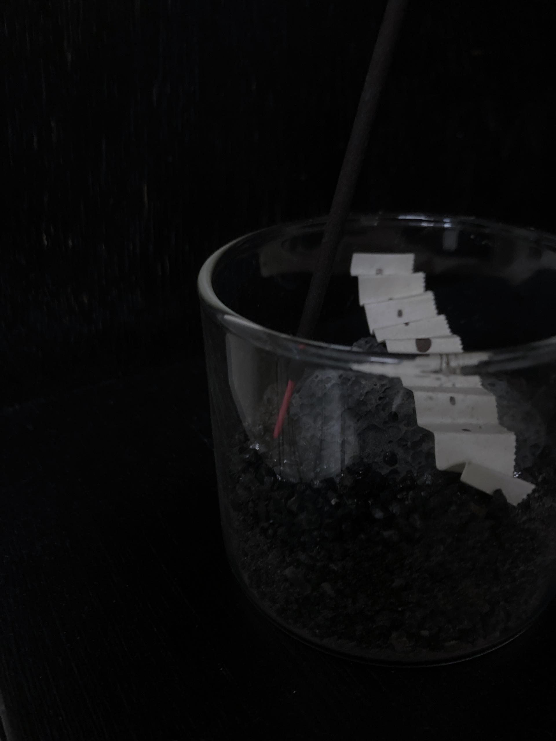 유리로 된 작은 집에 자갈과 돌을 넣어 서용할 수 았는 멀티 인센스 홀더입니다.